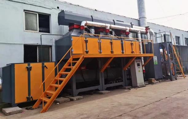 本項目采用“收集+預處理+活性炭吸附、脫附裝置處理+催化燃燒”主要包括以下兩個部分: 1)經過預處理后的廢氣,經活性炭吸附系統處理后通過排氣筒高空排放。 2)活性炭飽和后利用熱空氣進行脫附,脫附后氣體經過催化氧化系統進行進一步處理凈化后排放。